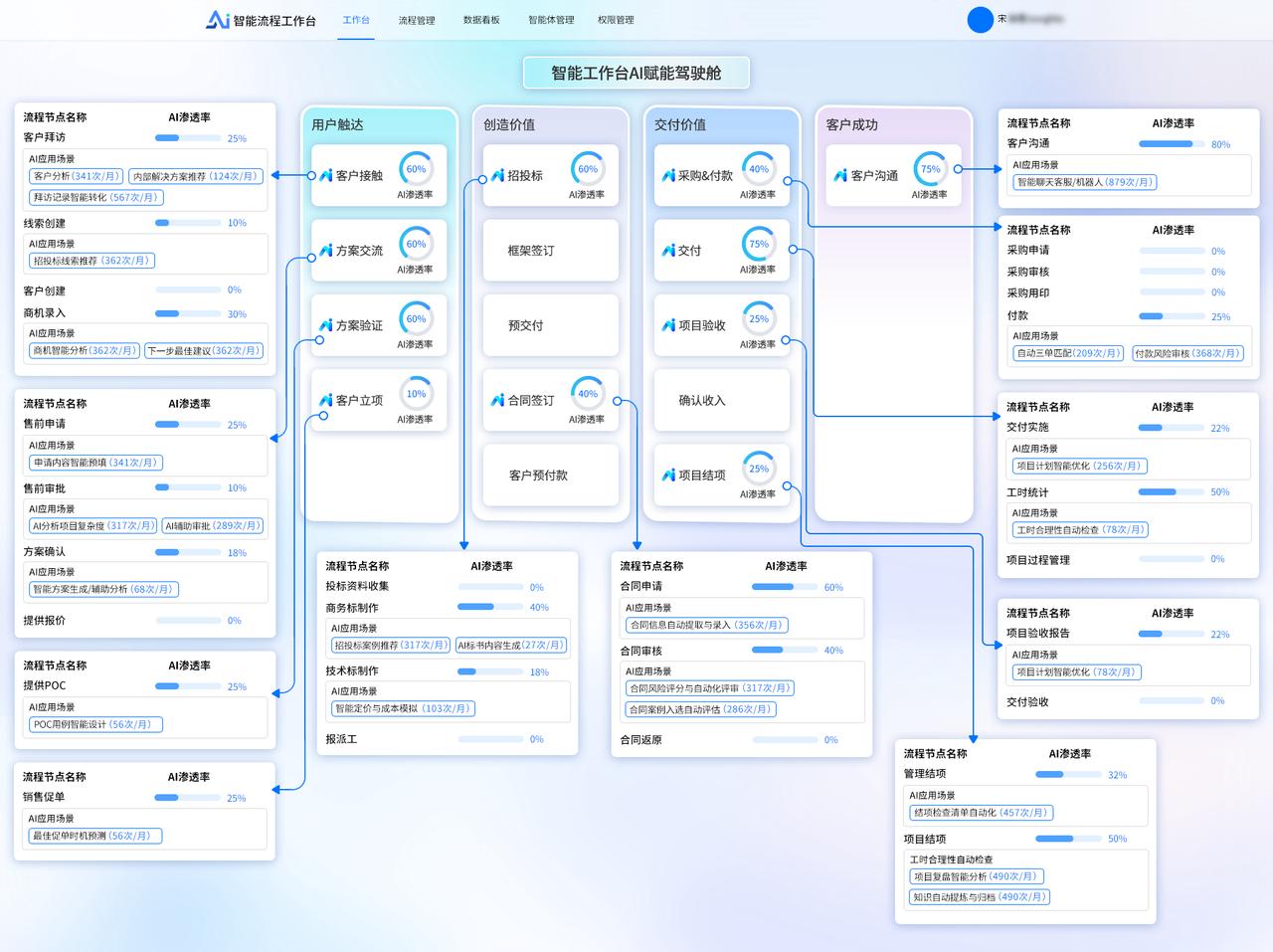 • 將業(yè)務(wù)流程以作戰(zhàn)地圖的形式進(jìn)行可視化呈現(xiàn),清晰展示流程的各個(gè)環(huán)節(jié)、節(jié)點(diǎn)之間的關(guān)系以及當(dāng)前流程所處階段